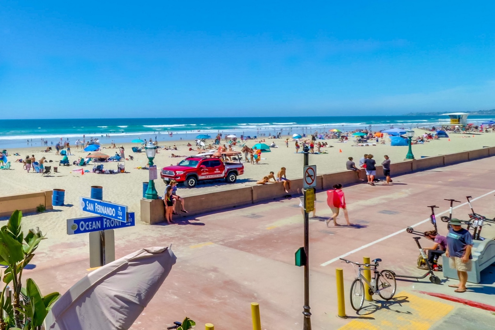 You can explore miles and miles of beaches along the oceanfront and bay front boardwalks, and Belmont Amusement Park with its famous wooden roller coaster, rides, and eateries is just steps away and makes for a wonderful family outing. The home is near grass parks, beach shops, and restaurants, and Mission Bay is just across the strand.